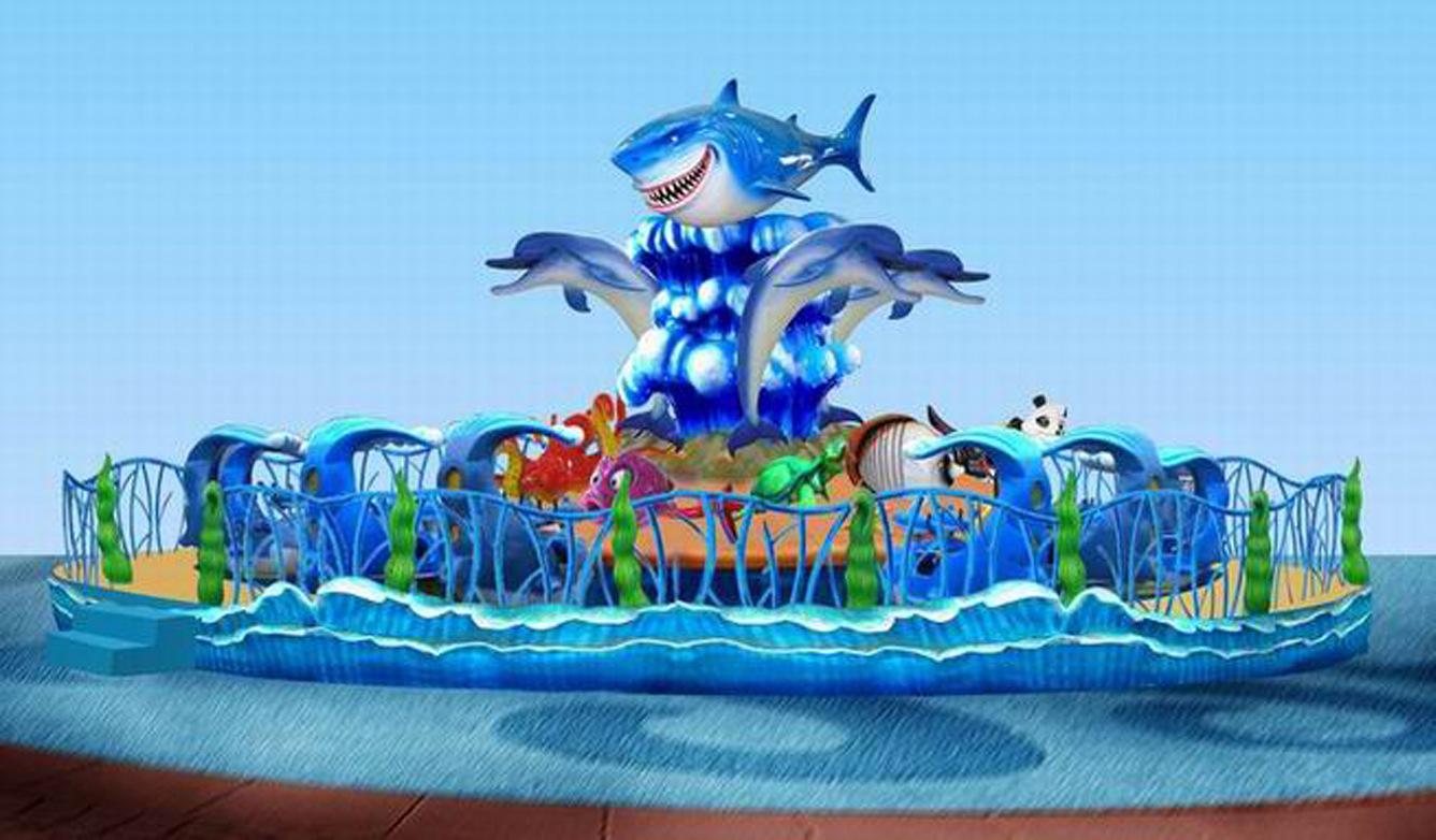 "激戰(zhàn)鯊魚島"是一種旋轉類游樂設備,可乘坐24人。當設備開動時,游客一邊乘坐會旋轉的飛船,一邊可用船上的水槍或激光槍射擊鯊魚島上的各種外型,當目的被擊中后,便會做出噴水,舉手等各種動作,姿態(tài)心愛,興味性強。而位居正中的鯊魚先生被射中后還會噴出水柱,向游客發(fā)出攻擊,使游客更能全身心的投入,從中享用樂趣。