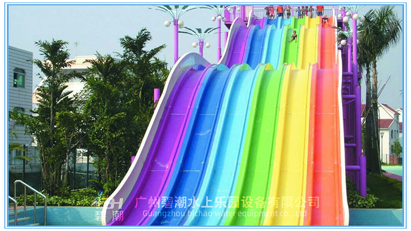 1. 水上樂園設(shè)備彩虹滑梯主體采用高性能的玻璃鋼復(fù)合材料,手工工藝糊制,具有非常強(qiáng)的韌性和硬度,安全,耐用。