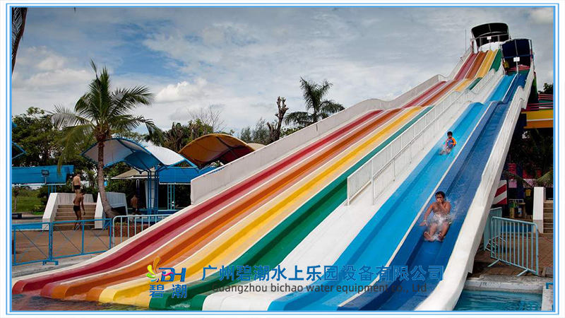 1. 水上樂園設(shè)備彩虹滑梯主體采用高性能的玻璃鋼復(fù)合材料,手工工藝糊制,具有非常強(qiáng)的韌性和硬度,安全,耐用。
