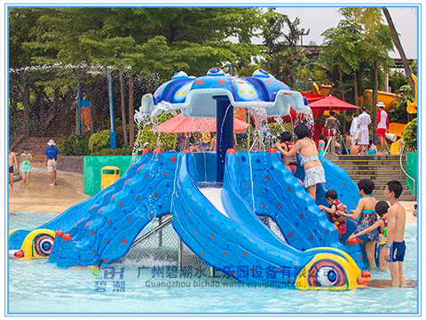 章魚滑梯是以海洋生物為主題精心設(shè)計的小朋友喜歡的水上滑梯直徑約9米,有三個樓梯,三條曲線滑道,平臺高度1.2米,造型美觀,造型奇特,上面有傘狀水幕,適合3-9歲兒童滑行。是現(xiàn)在兒童戲水小品中很受歡迎的一種小滑梯!